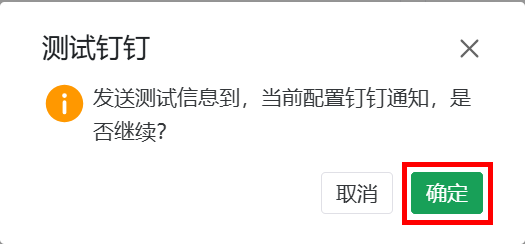 ③之后页面会自动刷新,此时可以对钉钉机器人通知功能进行测试,点击“已配置的通知渠道”下方右侧的“测试”按钮